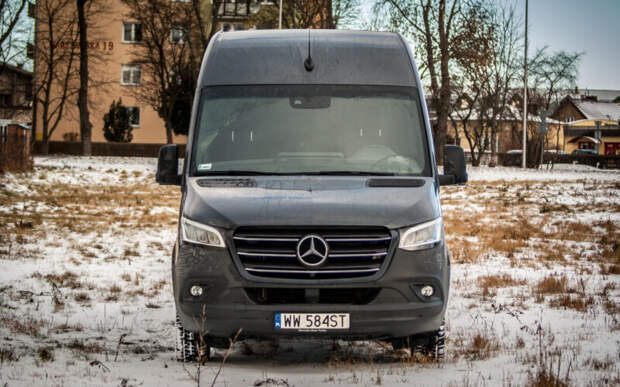 Стоит учитывать, что при колесной базе 4 325 мм для прохождения более крутых поворотов необходимо помнить о перекрытии автомобиля (хотя у Sprinter есть еще более длинная версия: 7,37 метра).Сгребать снег с этого колосса может быть непростой задачей.Тем более, что машина имеет высоту более 2,5 метров, а значит, для «ручного» удаления снега и льда с крыши этой машины требуется… разрешение на работу на высоте (имеем такое право).Зимой пригодится длинный скребок и длинная щетка.Убрать иней с лобового стекла помогает и зимняя омывающая жидкость – форсунки Sprinter находятся в рычагах стеклоочистителя, благодаря чему нам удается очень быстро справиться с проблемой, по крайней мере, на лобовом стекле.